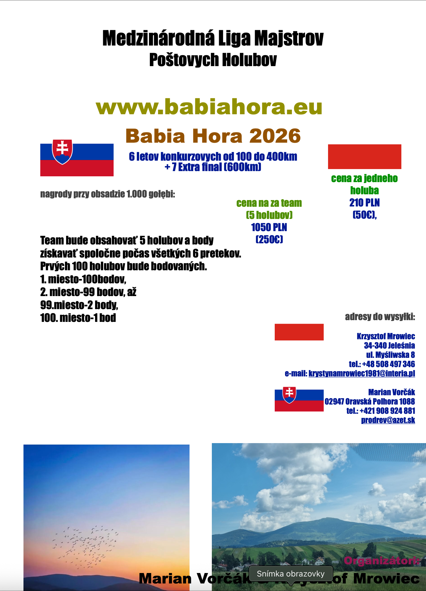 Chovatelia ktorý sa chcú zúčastniť preteku je potrebné aktivovať holuby najneskôr do utorka 24. 9 2024 na tel 0908 924 881 alebo 508497346